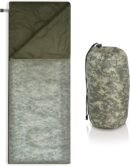 - Works As A Blanket, Too! – Fitted with a zipper that runs along the sides and bottom, you can open up the summer sleeping bag and use it as a quilt. It’s offered in 2 variants: Digital Camo and Olive Drab.